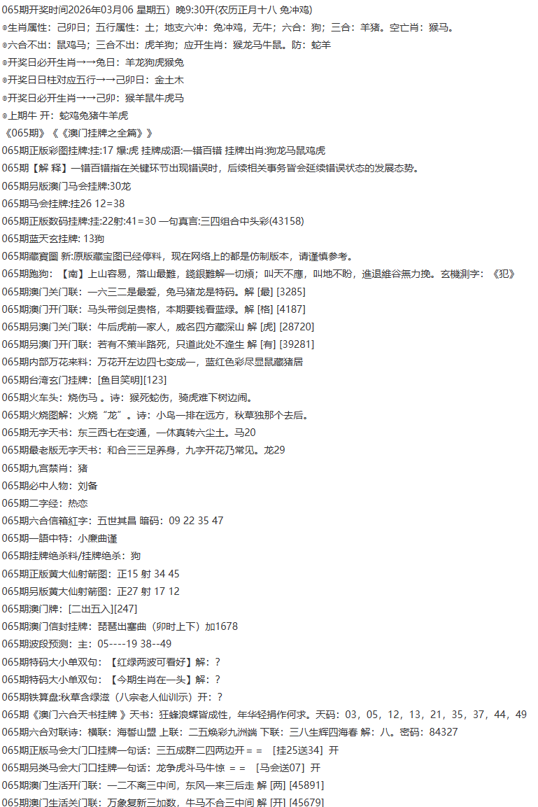 065期:前后肖必中【前肖前肖】开:0000准 |