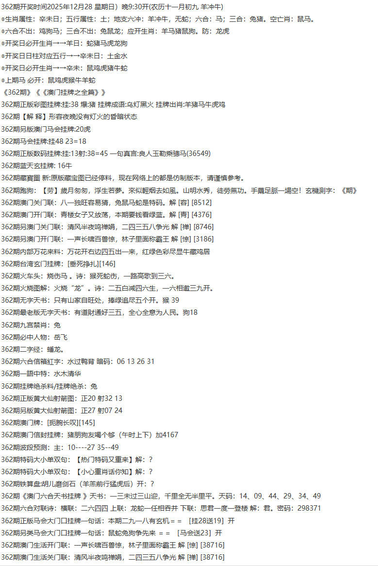 362期:前后肖必中【后肖后肖】开:0000准 |