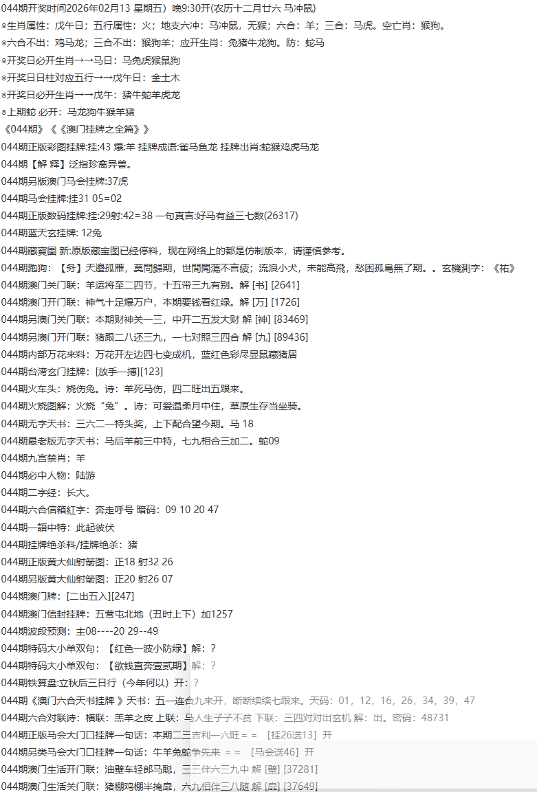 043期本站公开六肖中特:鸡羊兔龙马 开蛇13准