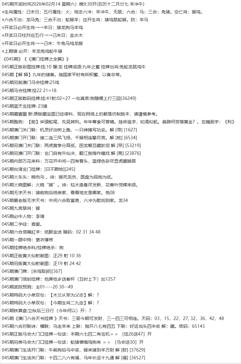 045期:前后肖必中【后肖后肖】开:0000准 |